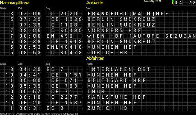 I provide a Windows program that displays the real-time arrival and departure schedules for long distance trains of the Deutsche Bahn AG using data from DB Vertrieb GmbH or Swiss transport data from seach.ch